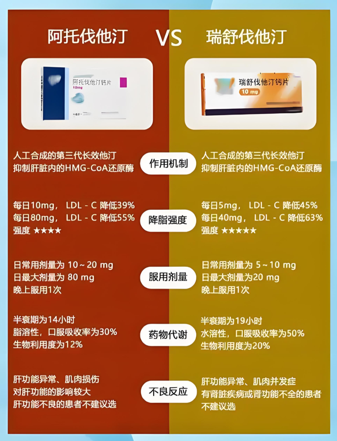 阿托伐他汀与瑞舒伐他汀是临床最常用的两种强效他汀类药物,在降脂强度和适用人群上各有特点。