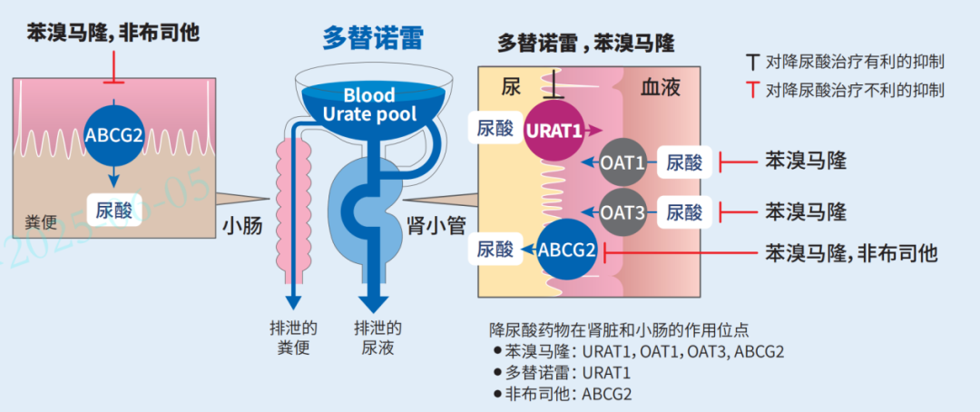 多替诺雷(Dotinurad)是近期在国内获批的一种降尿酸治疗新药,适用于高尿酸血症及痛风患者。其作用机制同时覆盖抑制尿酸生成和促进尿酸排泄,因此也被称为“双路径”降尿酸药物。