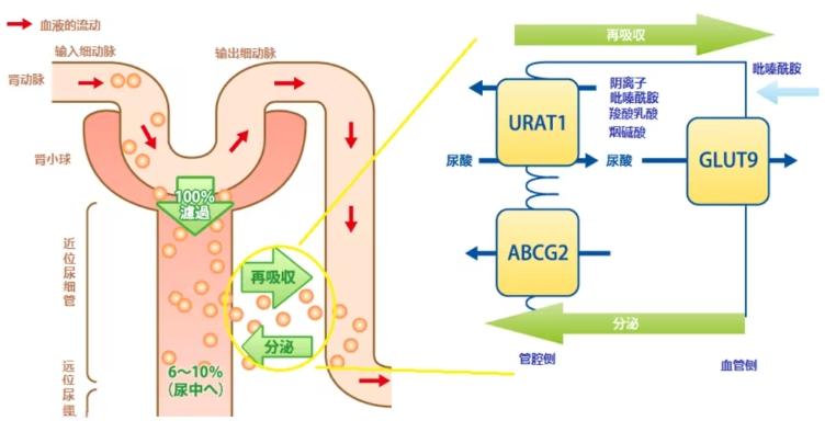 它的作用机制非常明确:精准抑制肾脏中的URAT1转运蛋白,促进尿酸排泄,不影响ABCG2、OAT1/3等其他通道,因此降尿酸效率更高,肝肾不良风险较低。